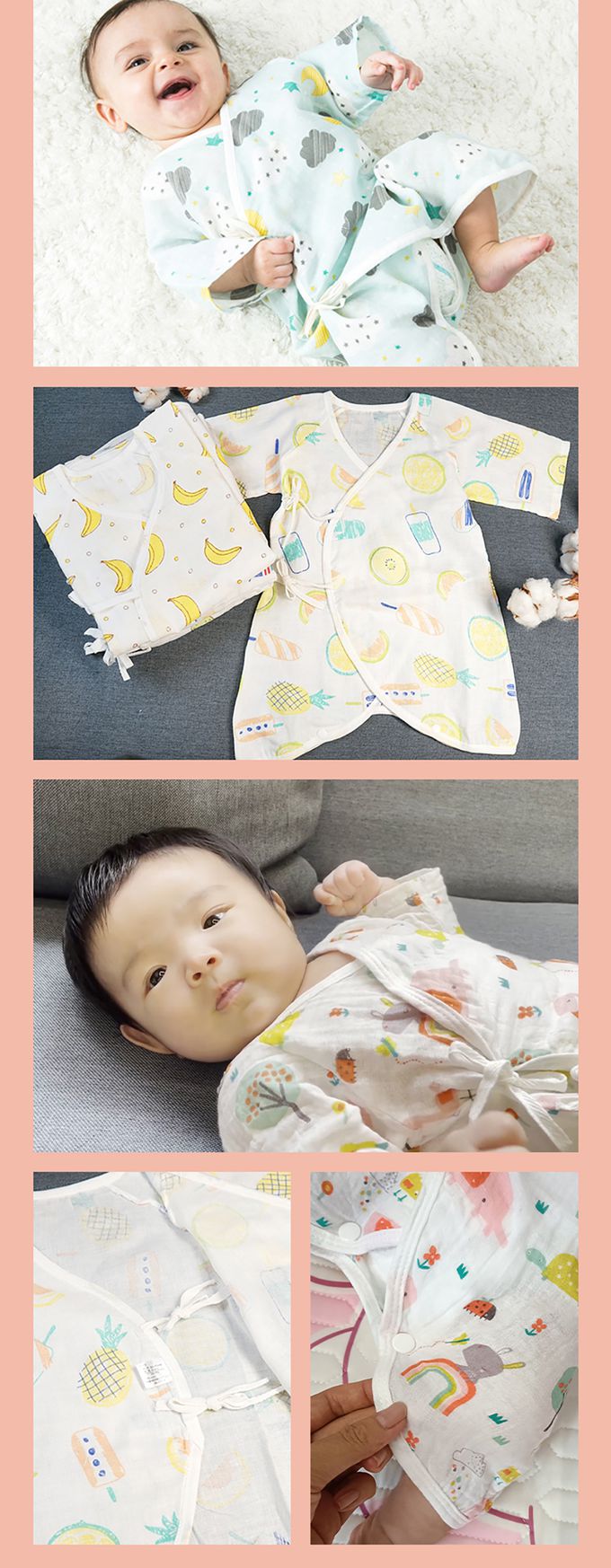 5.紗布包屁衣,剛出生的寶寶必備紗布衣!底部按扣設計,方便更換尿布,繫繩設計方便穿戴。