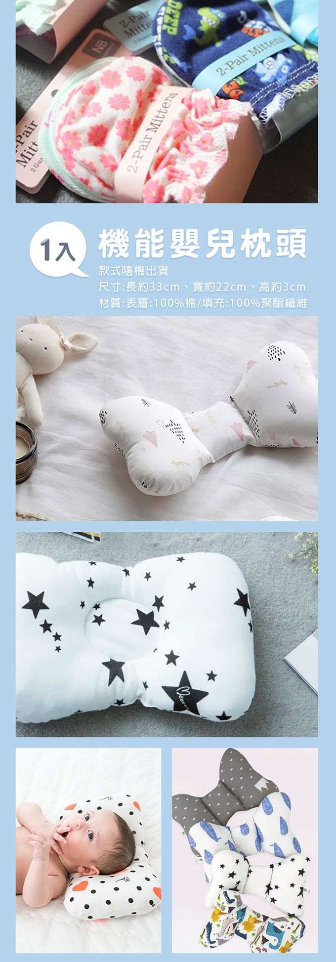 新生兒機能枕:表層100%棉 填充物100%聚酯纖維