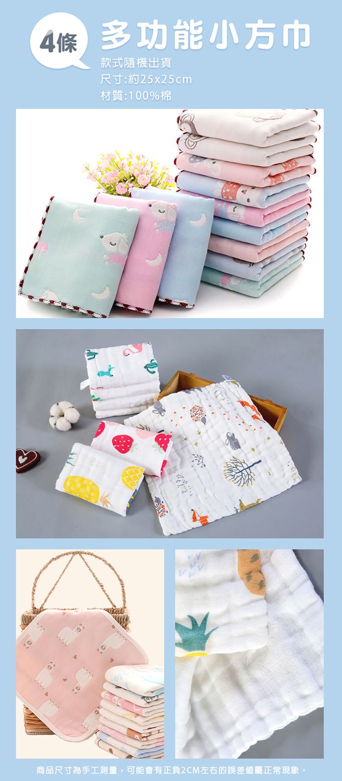 8.多功能方巾,不論是當洗澡巾、餵奶巾、小手帕、口水巾、拍嗝巾,都適用。