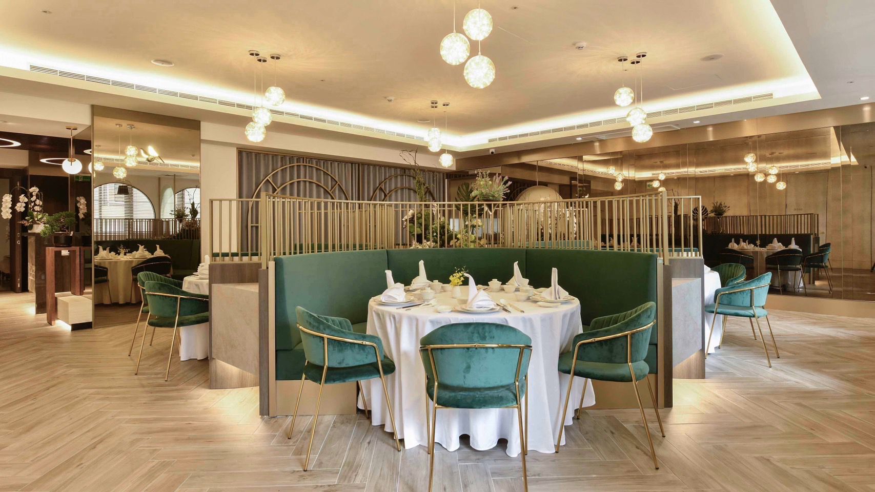 位於二樓的全新「柒號洋樓MANSION 7 Authentic Shanghai Cuisine」餐廳,以民國初年典雅「上海老洋樓」設計發想,隨處可見以極具質感的玫瑰古銅金金屬打造復古圓弧拱門、鏡面玻璃,搭配特別訂製之沉綠色皮質沙發區及鳥籠造型吊燈,處處瀰漫中西合璧的韻味,營造古典與現代、東方簡約與西方優雅元素的融合。
