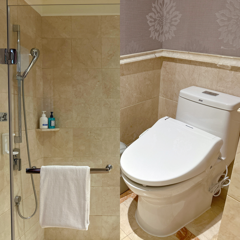 浴室是乾濕分離,有提供浴缸和淋浴的設備~另外馬桶是免治馬桶超方便!