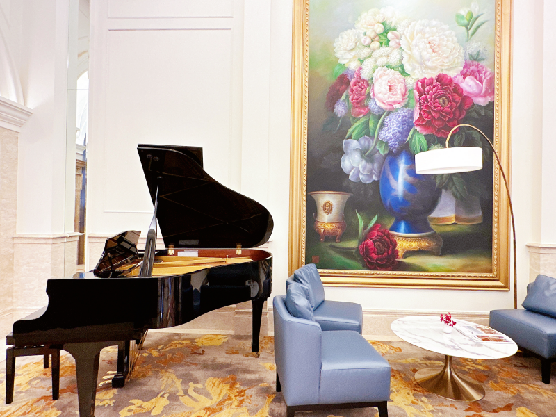 台北漢普頓酒店的大廳風格典雅大方又氣派,還擺放了平台鋼琴更增添了文藝感,旁邊有放置不同語言介紹台北的地圖,我們覺得很實用推薦別忘了拿喔~