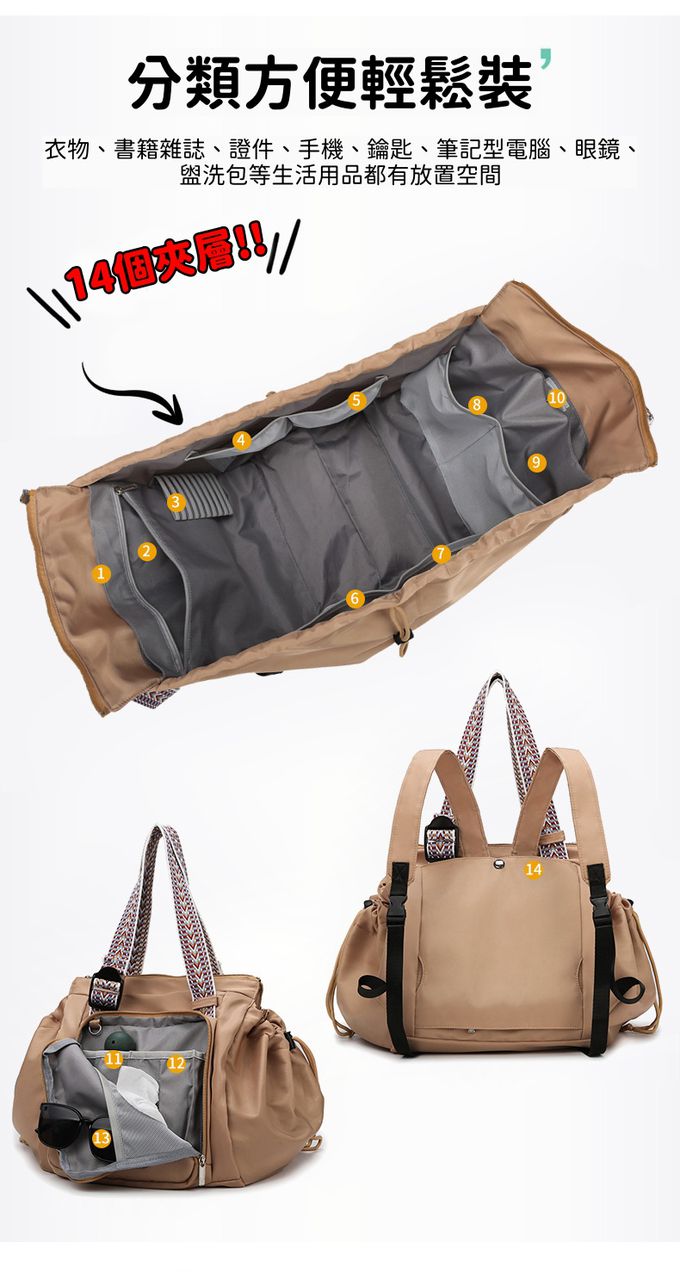 • 14個夾層,分類收納方便,各類用品輕鬆裝
