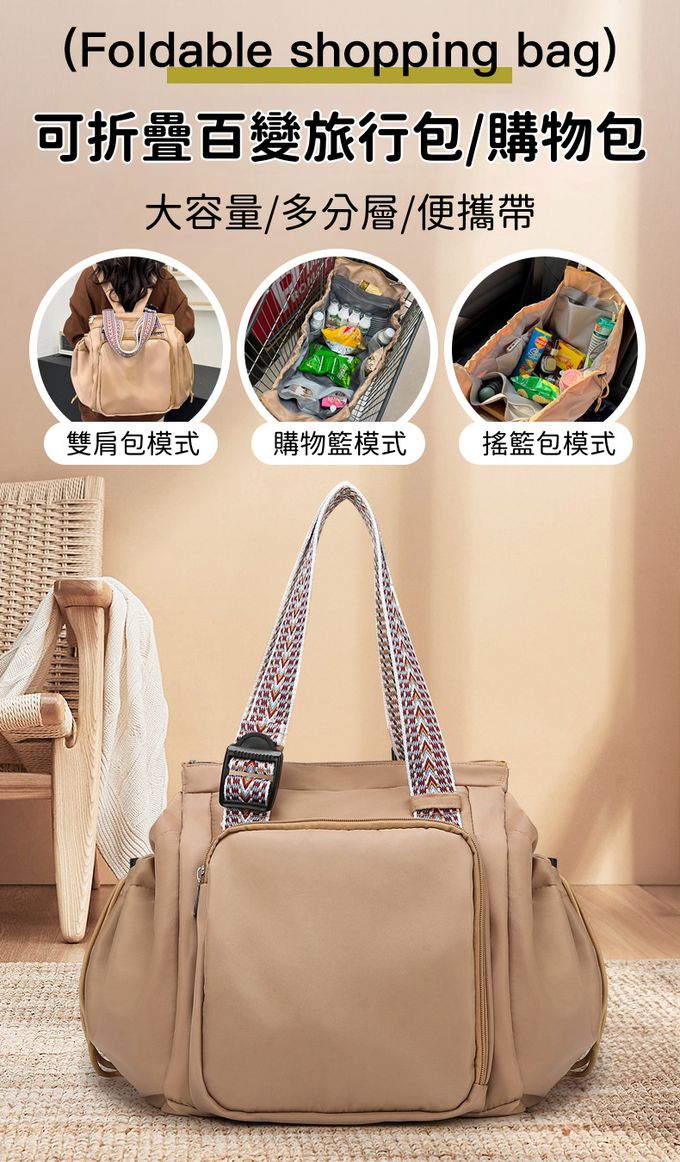 • 品名:大容量可折疊百變多功能旅行包/購物包