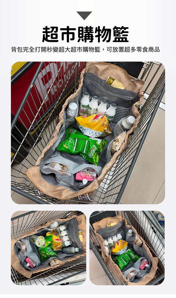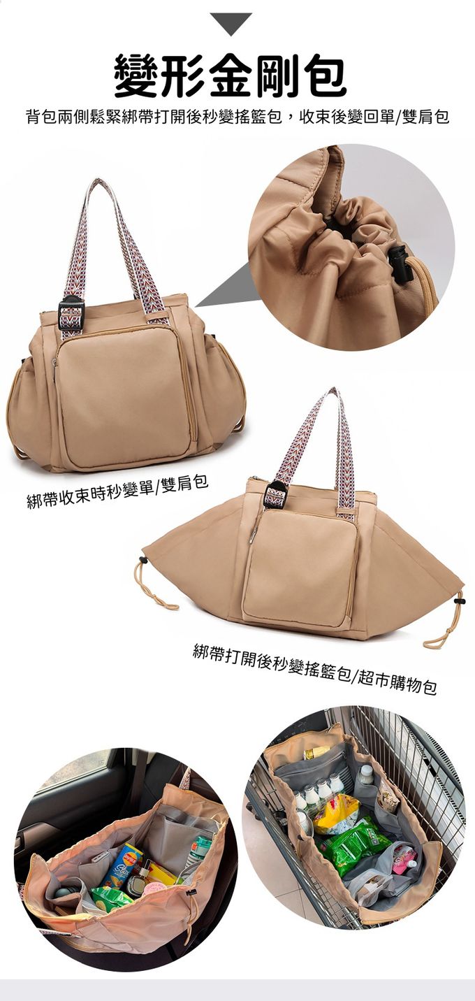 這一咖包包後來被我暱稱為 #變形金剛包 ,不僅 #容量超大可以當採買購物袋 ,雙邊還有拉繩,全部展開以後 #完全吻合超市大型推車,結帳完畢一秒收合,提起來就可以走了,不用再費心喬位置重新安放,這點真的深得我心