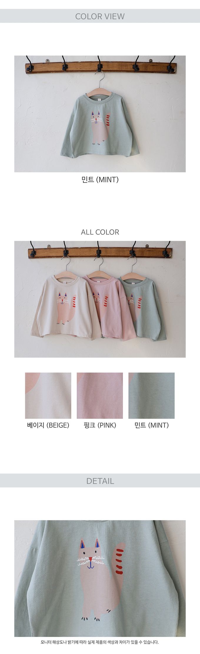 韓國 PuellaFLO - 萌萌粉貓咪長袖上衣-灰綠
