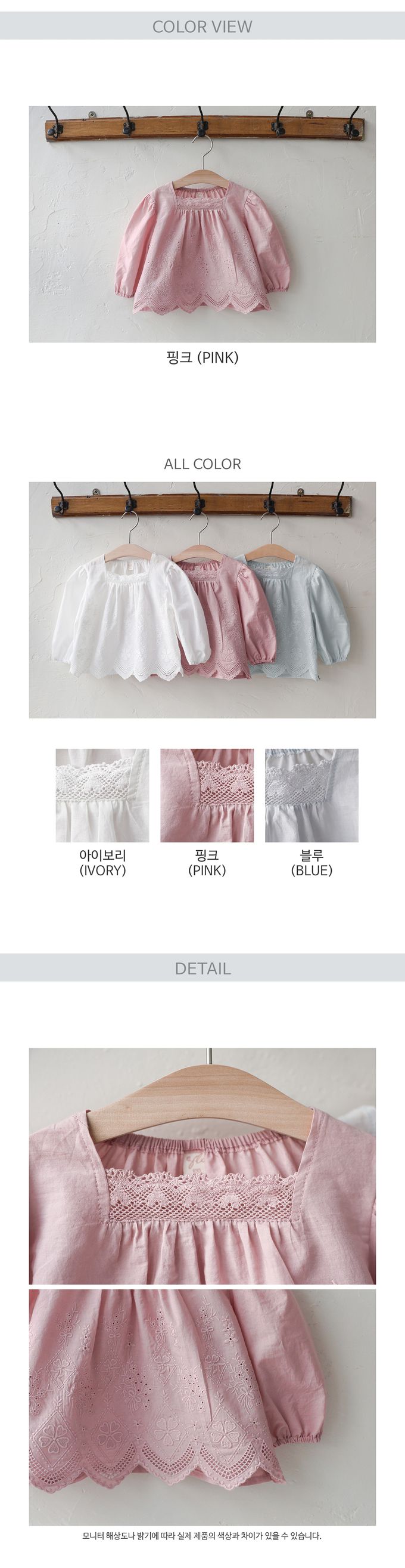 韓國 PuellaFLO - 幸運草繡花方領9分袖襯衫-粉