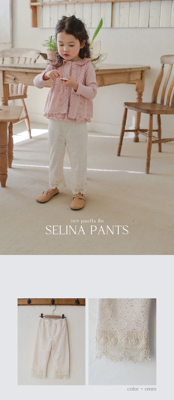 韓國 PuellaFLO - 鬆緊腰蕾絲花朵紋路長褲-米