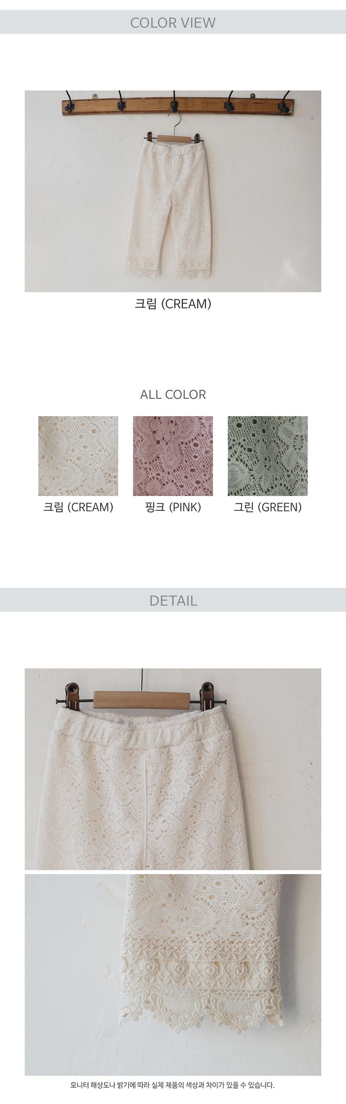 • 品名:鬆緊腰蕾絲花朵紋路長褲