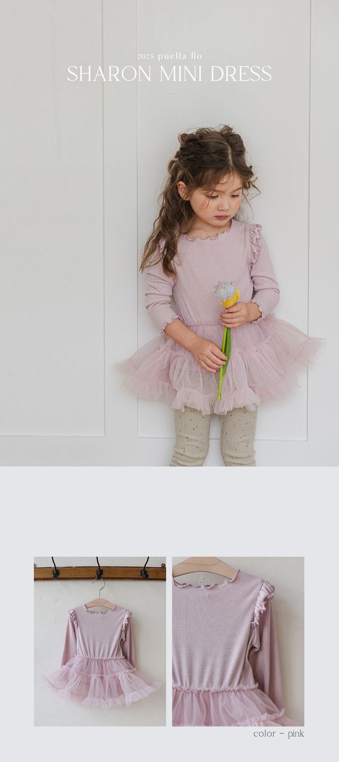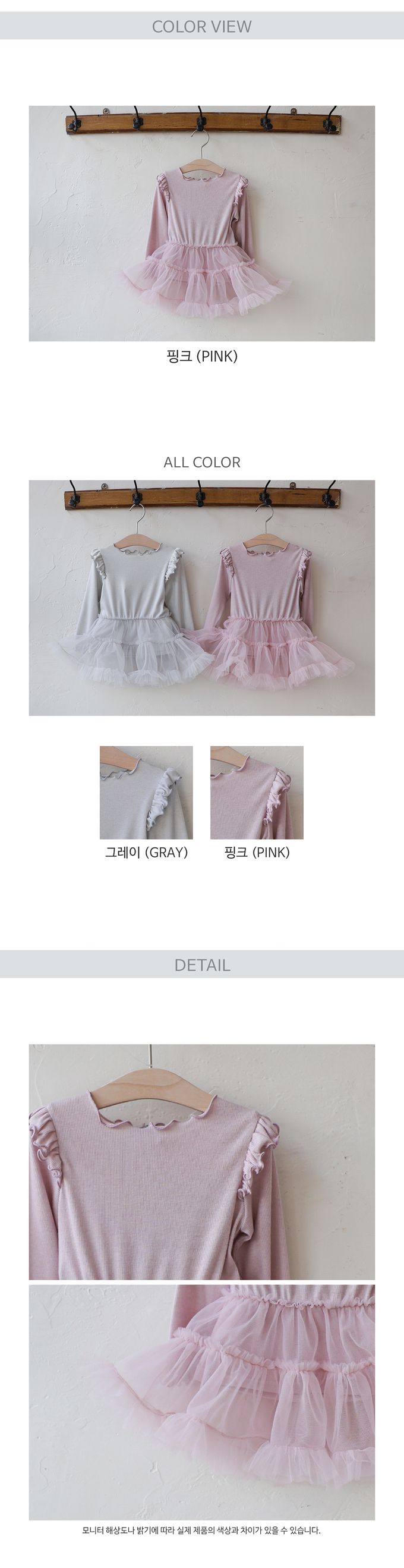 韓國 PuellaFLO - 純色芭蕾女孩拼接網紗洋裝-粉