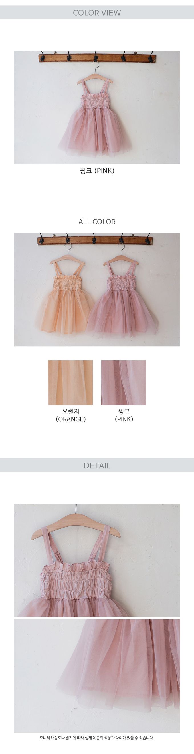 韓國 PuellaFLO - 溫柔皺摺感網紗細肩帶洋裝-粉