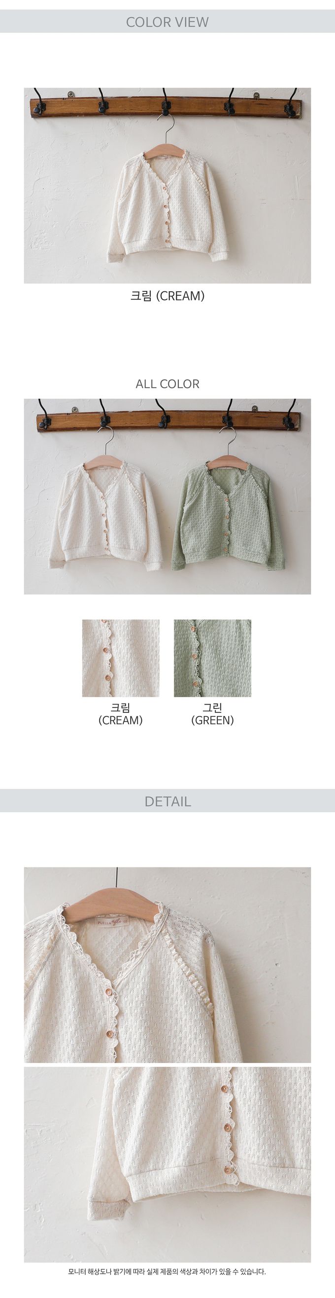 韓國 PuellaFLO - 鏤空感蕾絲點綴V領針織外套-米