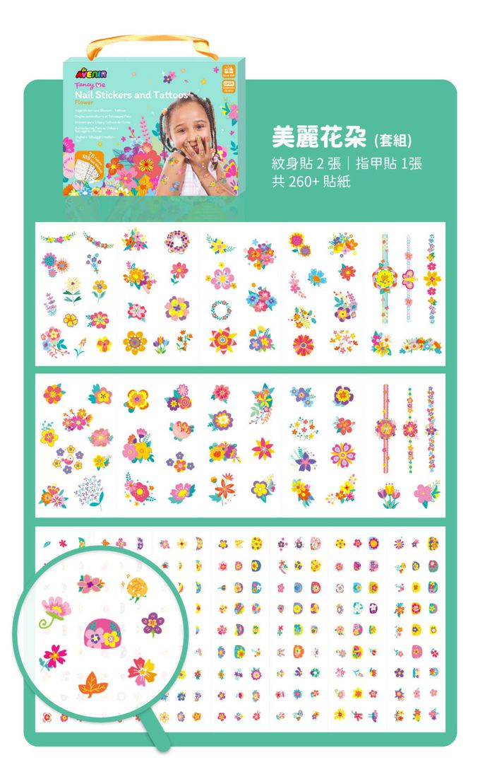 ※ 內容物:189 個美甲貼紙;75+ 個紋身轉印貼紙