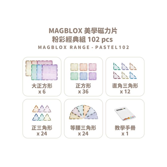 |MAGBLOX 澳洲 美學磁力片 粉彩經典組102pcs|