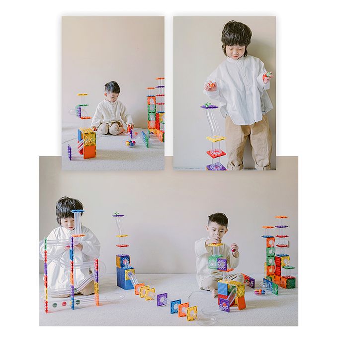 磁力片的玩法自由、充滿變化,可以搭配不同造型的磁力片與配件