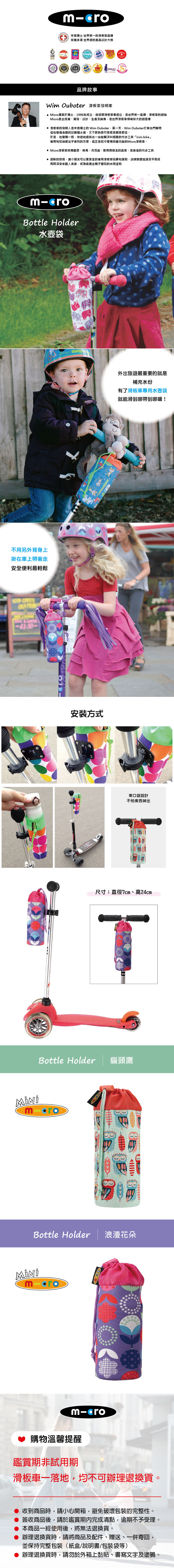 顏色鮮豔繽紛的水壺袋,可以固定在滑板車上,讓您騎到哪兒,也能輕鬆補充水分。可裝下 350ml 的容器。