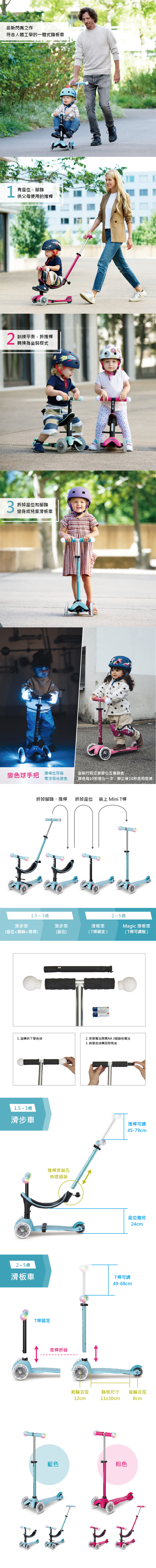 2~ 5歲- 第3階段滑板車:拆掉座位和腳踏,替換T桿,變身 Mini Deluxe Magic 兒童滑板車