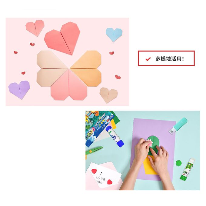 拿出寶可夢色紙,摺完的寶可夢黏在紙張上裝飾,就是一張心意滿點的手作卡片 !