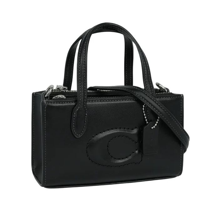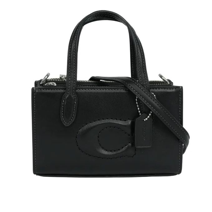 縫線LOGO迷你托特兩用包 (黑)