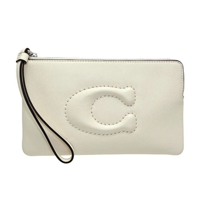縫線LOGO皮革手拿包 (白色)