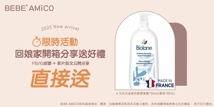 推車粉絲回娘家:收到商品後回來官方粉絲團IG / FB擇一【按讚+提供影片貼文公開分享】贈【法貝兒滋養舒緩雙潔露750ml】(價值700元)。