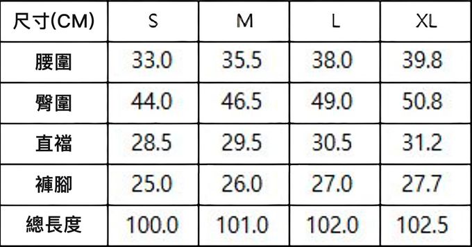 1. 尺寸表單位皆為公分(cm),實際尺寸會因布料彈性、水洗、測量起迄點等因素略有誤差。