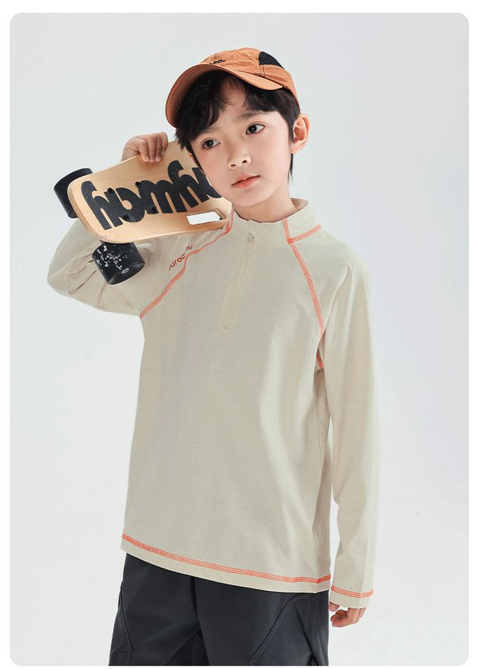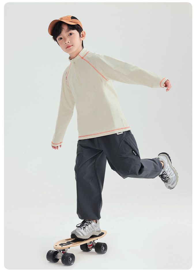 UPF50+吸濕排汗半開襟長袖上衣-米色