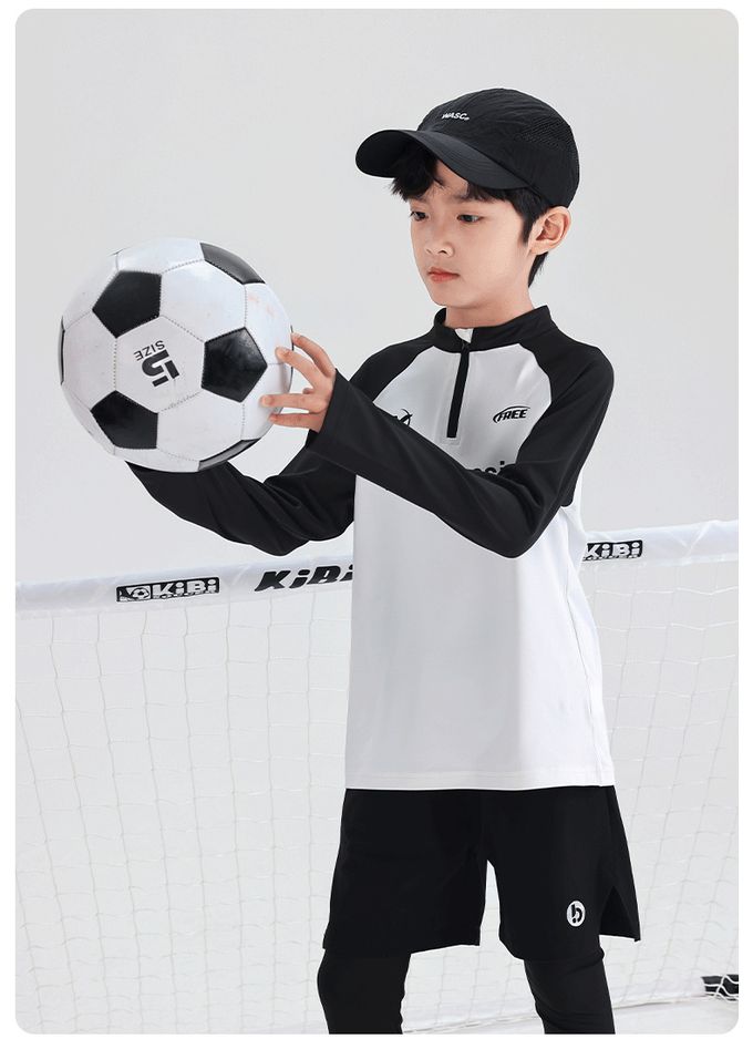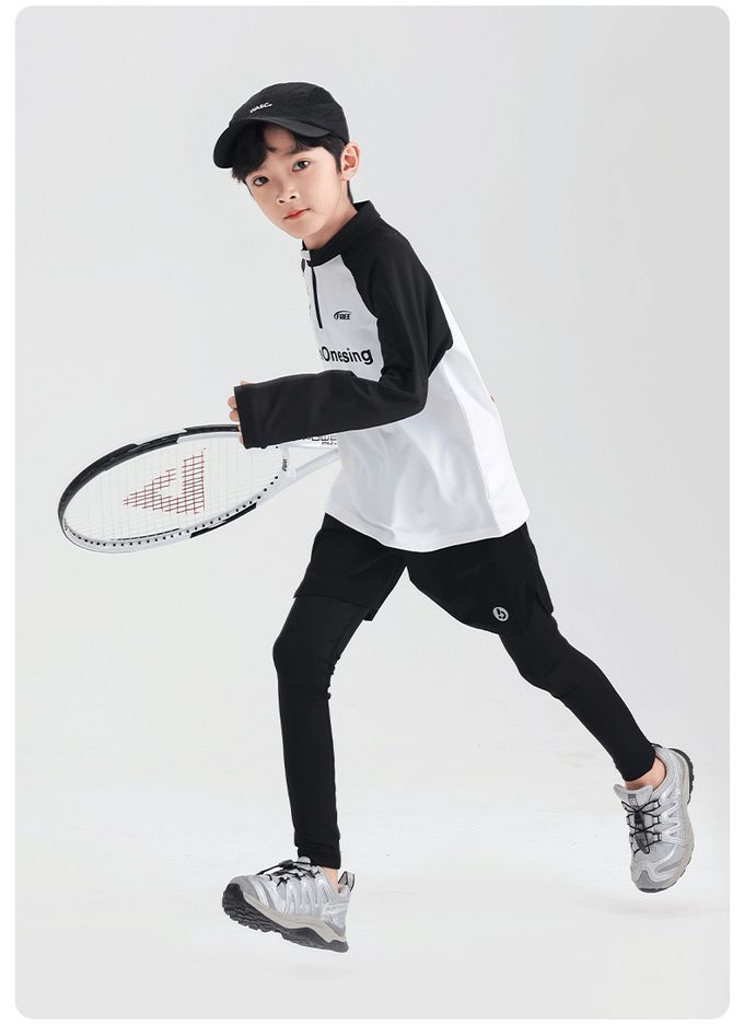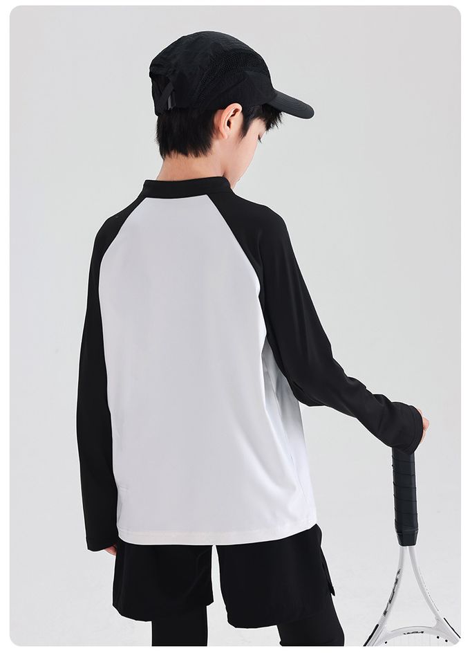 UPF50+吸濕排汗半開襟長袖上衣-拼色白