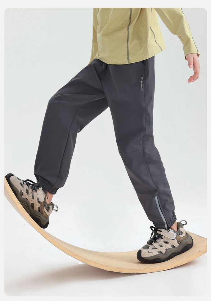 防潑水腰鬆緊休閒運動束口長褲-拉鍊褲腳-深灰色