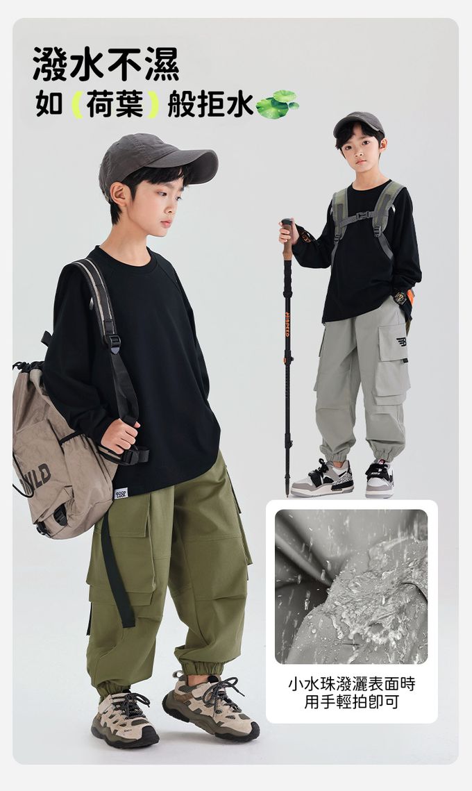 品名:防潑水腰鬆緊休閒運動束口長褲