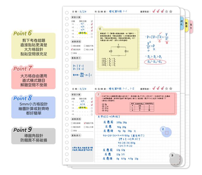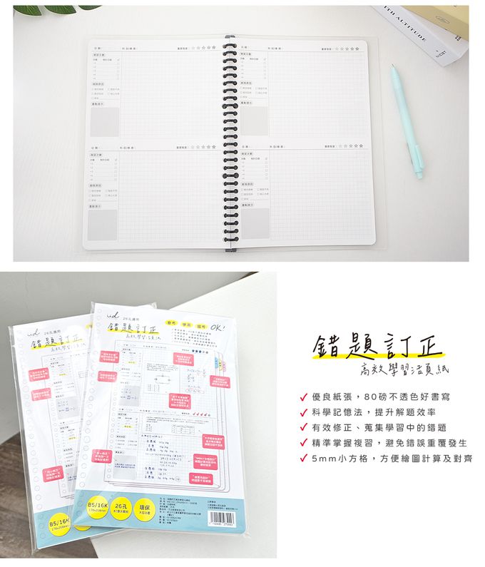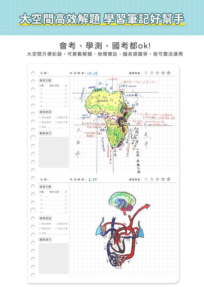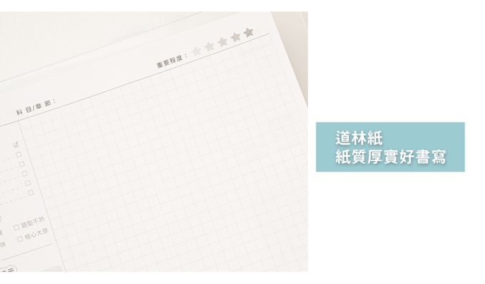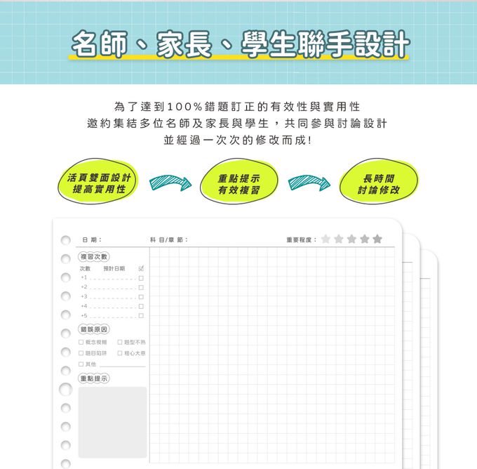 經過反覆修改設計而成,更貼近學生需求,比市售筆記紙張更好用 !