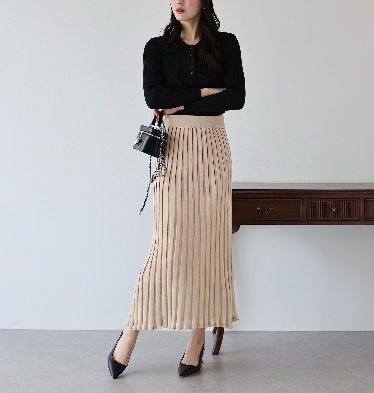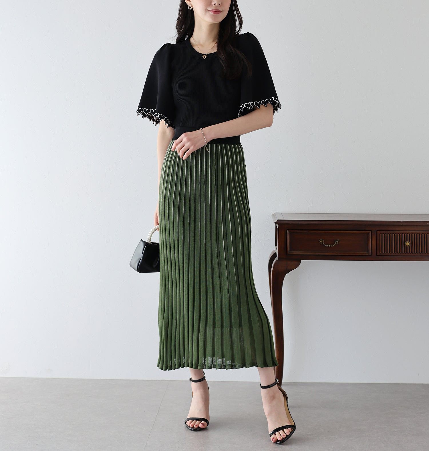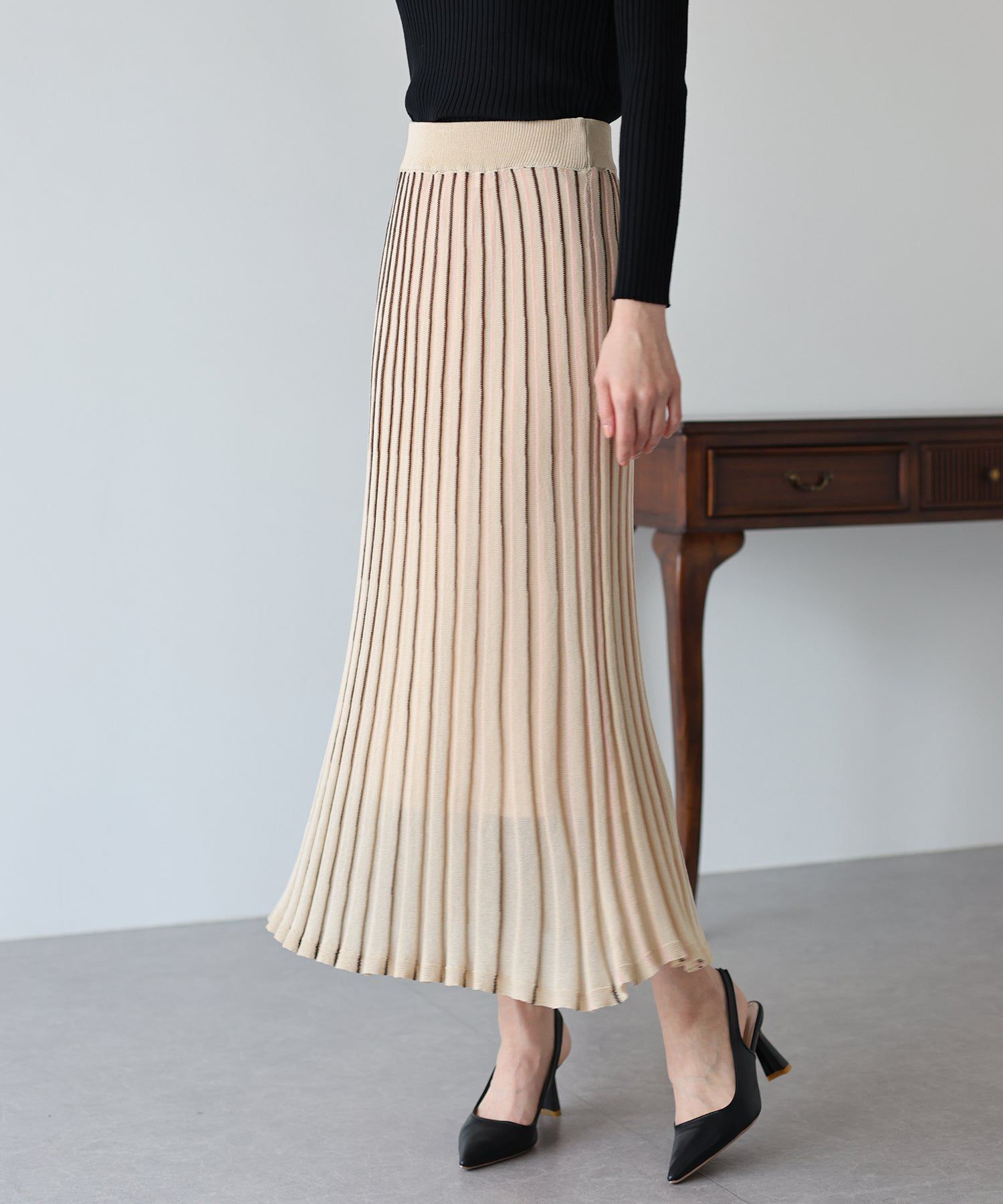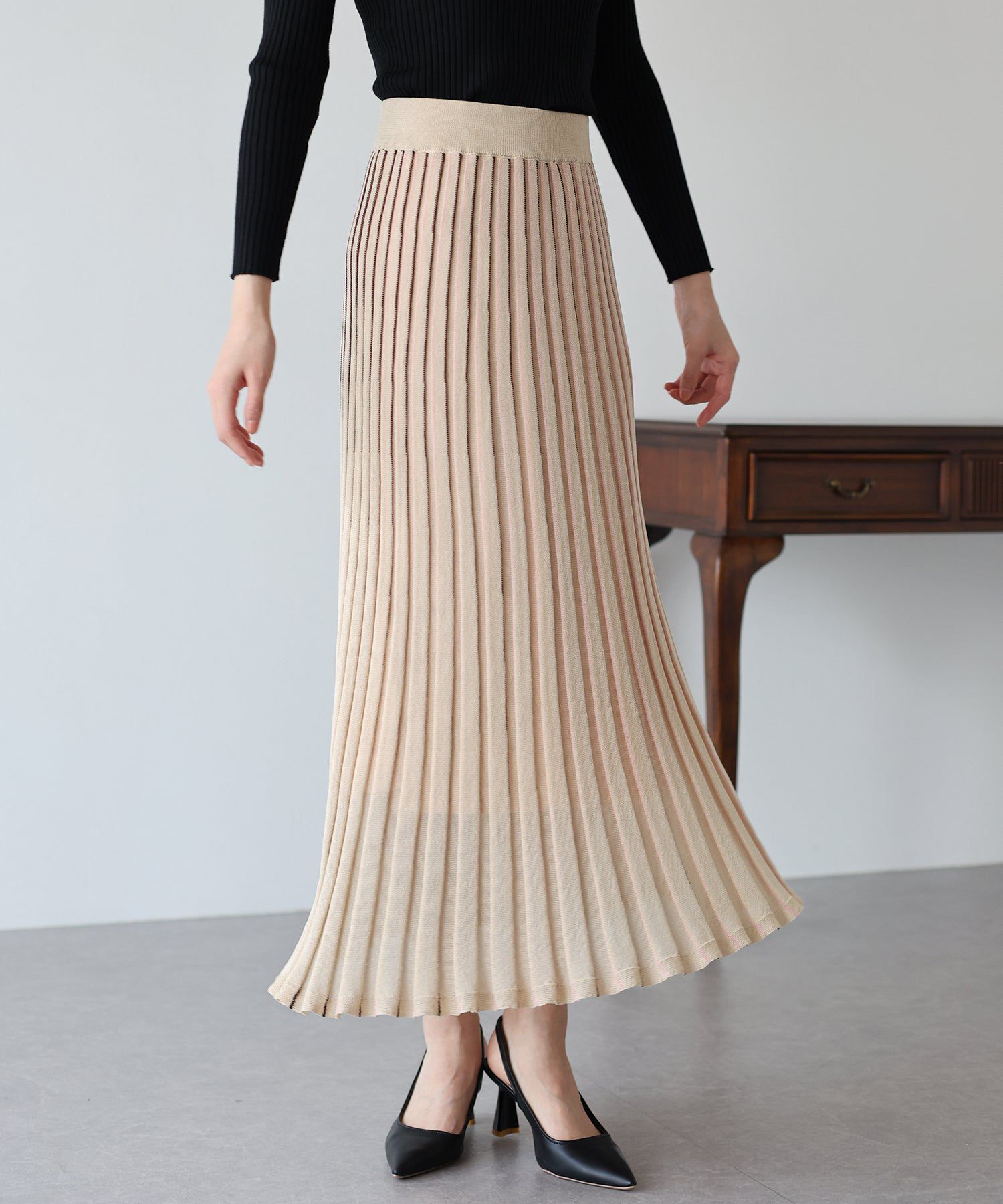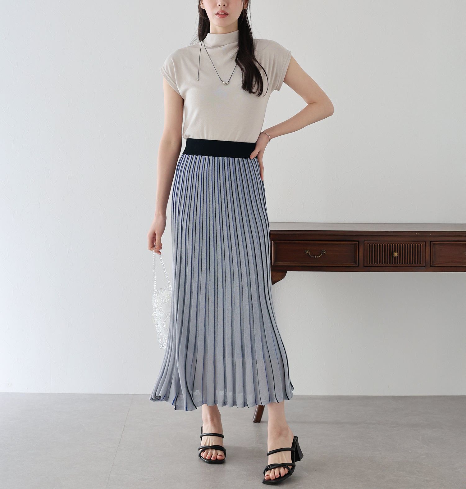 日本 BLUE EAST - 顯瘦美型條紋透明感針織長裙-葉綠