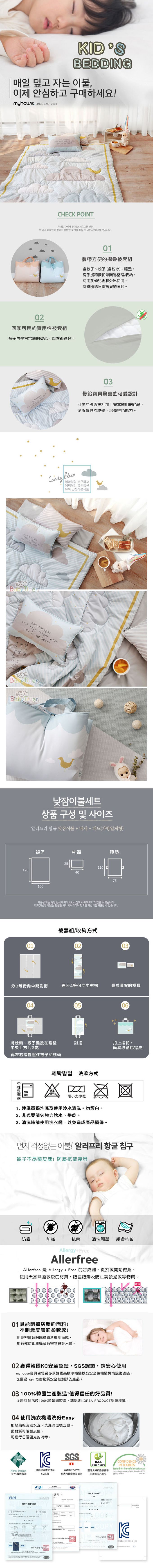 ▲100%韓國生產製造!值得信任的好品質!▲可折疊,攜帶方便好收納的午睡被套組▲具阻擋塵蟎功能的細纖維原料,長久使用如新品般彈性▲彈性佳,舒適透氣,四季適用實用被套組▲可使用洗衣機,清洗好Easy規格◆內容物:被子(1張)枕頭(1個/含枕心)+睡墊(1張).被子-120X100±3% (cm).睡墊-110X75 ±3% (cm).枕頭(內含枕心)-40X25±3% (cm)◆材質:100% polyester 聚酯纖維 (micro fiber)