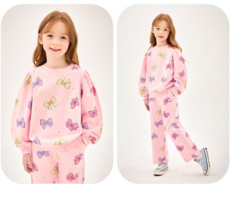 韓國 Jelispoon - 少女蝴蝶結印長袖套裝-粉