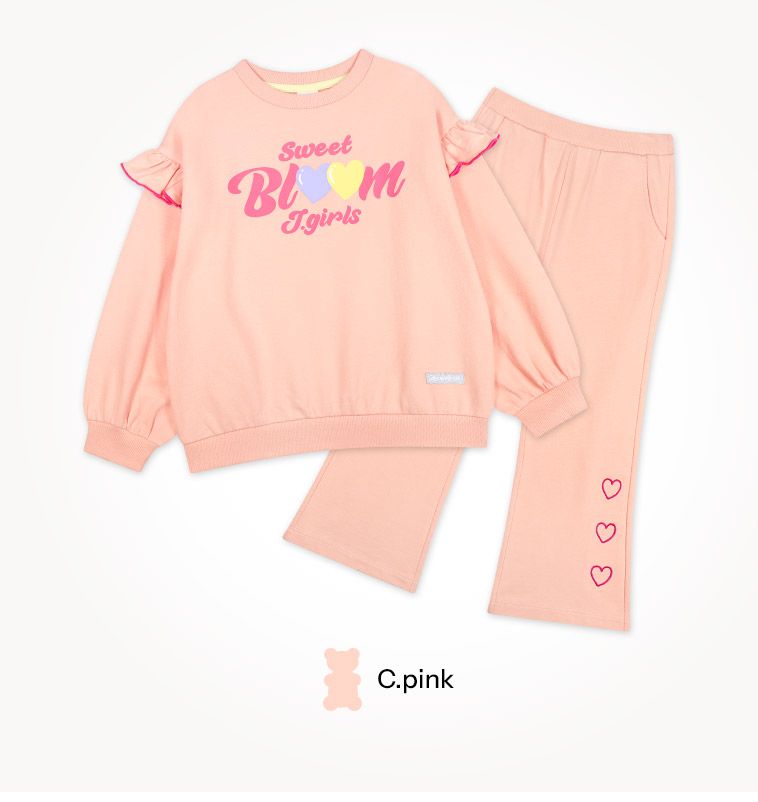 韓國 Jelispoon - 愛心Bloom長袖套裝-粉橘