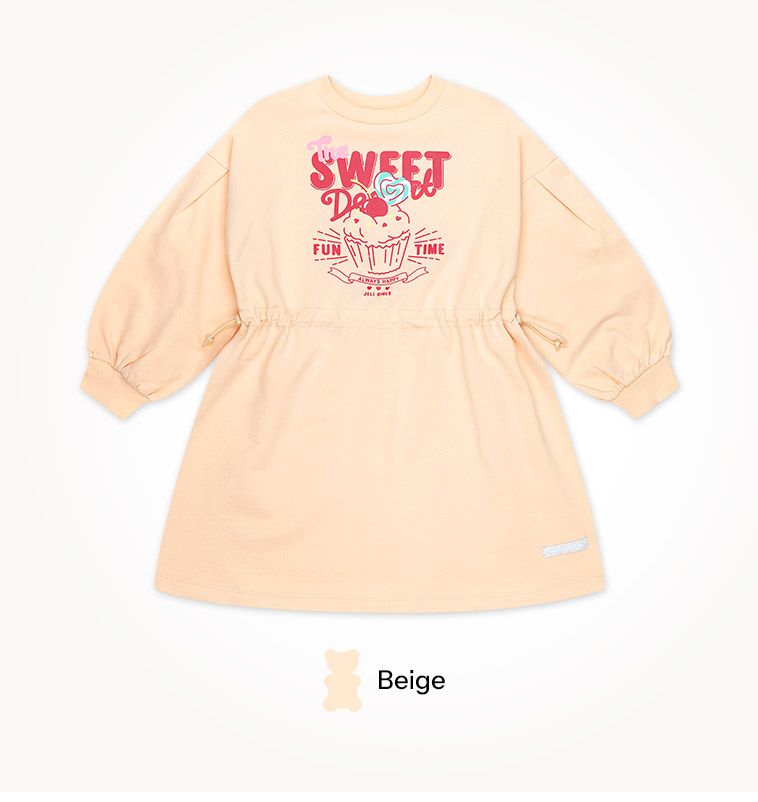 韓國 Jelispoon - Sweet蛋糕縮腰長袖洋裝-卡其杏