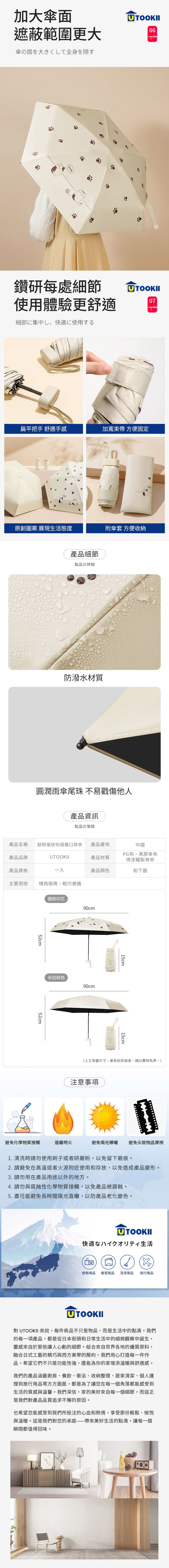 超輕量迷你摺疊口袋傘-米白純色