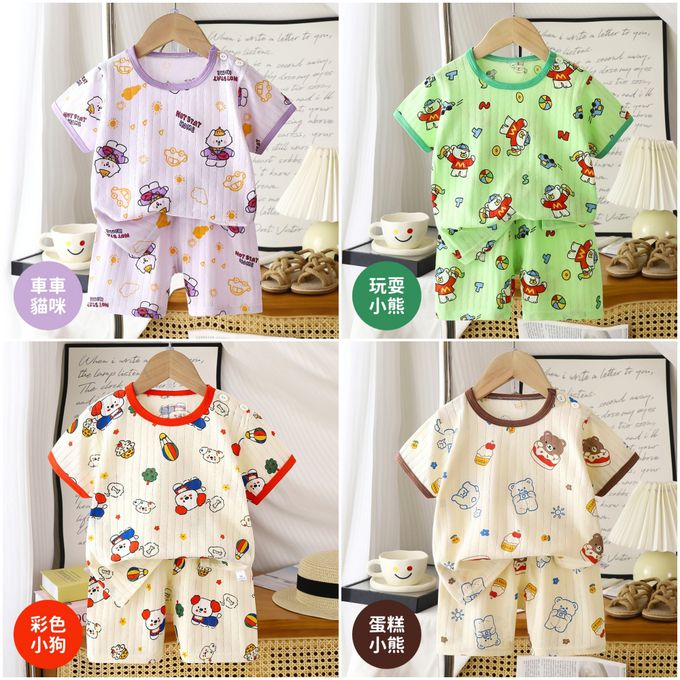 WarmNest - 純棉網眼透氣短袖短褲家居服套裝-蛋糕小熊