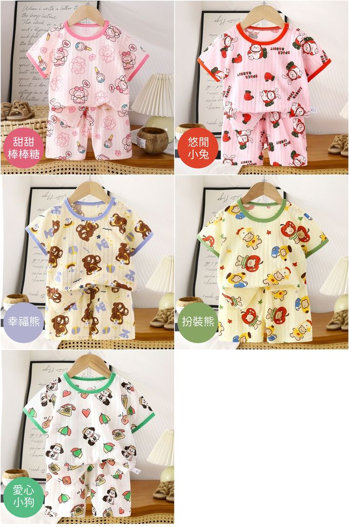 WarmNest - 純棉網眼透氣短袖短褲家居服套裝-彩色小狗
