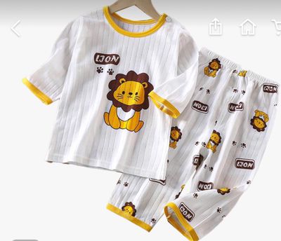 WarmNest - 純棉網眼透氣長袖家居服套裝-開心獅子-白色
