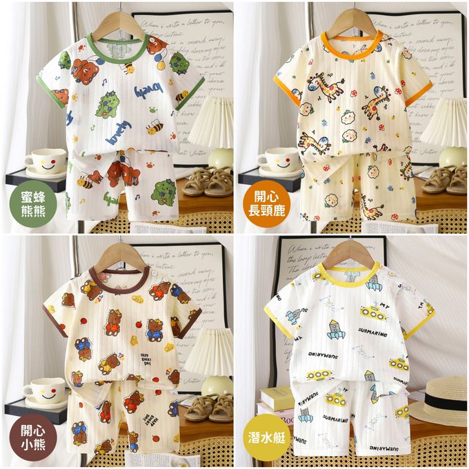 純棉網眼透氣短袖短褲家居服套裝-開心長頸鹿