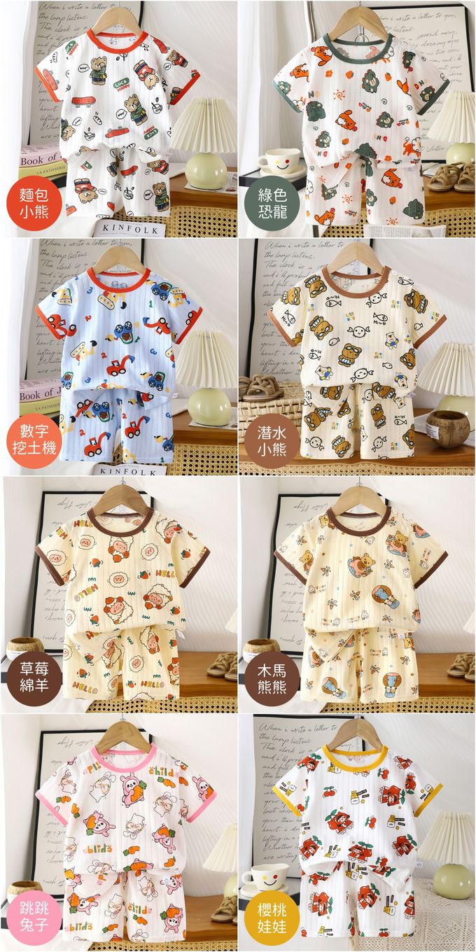 WarmNest - 純棉網眼透氣短袖短褲家居服套裝-飛機恐龍