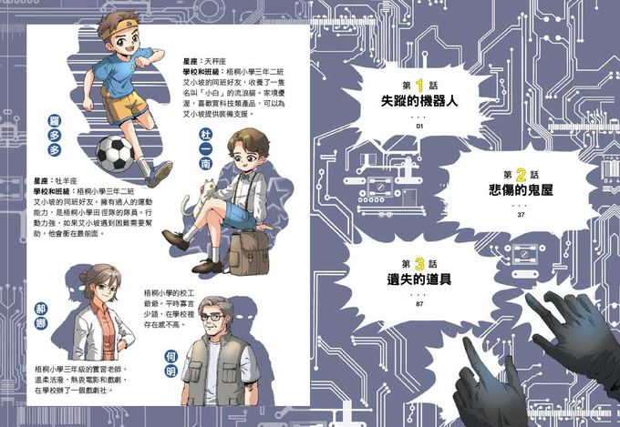 ﹝漫畫讀本﹞則為搭配兒童小說版本之全新創作系列,以「尖端科技」為主題,將有關「人工智慧」、「虛擬實境」以及「病毒疫苗」等元素,和偵探故事巧妙融合,透過更生動詳實的全彩漫畫形式,搭配富含知識性的文字敘述,使閱讀變成參與「分析判斷」和「推理」的解謎過程。希望透過這本書,能讓孩子用另一種趣味的形式提升邏輯推理能力及增進科學素養!![]()