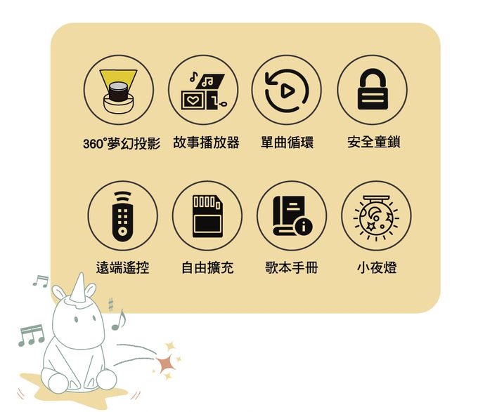 缺點是無法對焦,所有投影比較遠的牆面會模糊。還有底部音樂盒的音樂有點走音。可以旋轉的設計很棒,其他音檔內容的音樂和故事都非常的好!!!!
