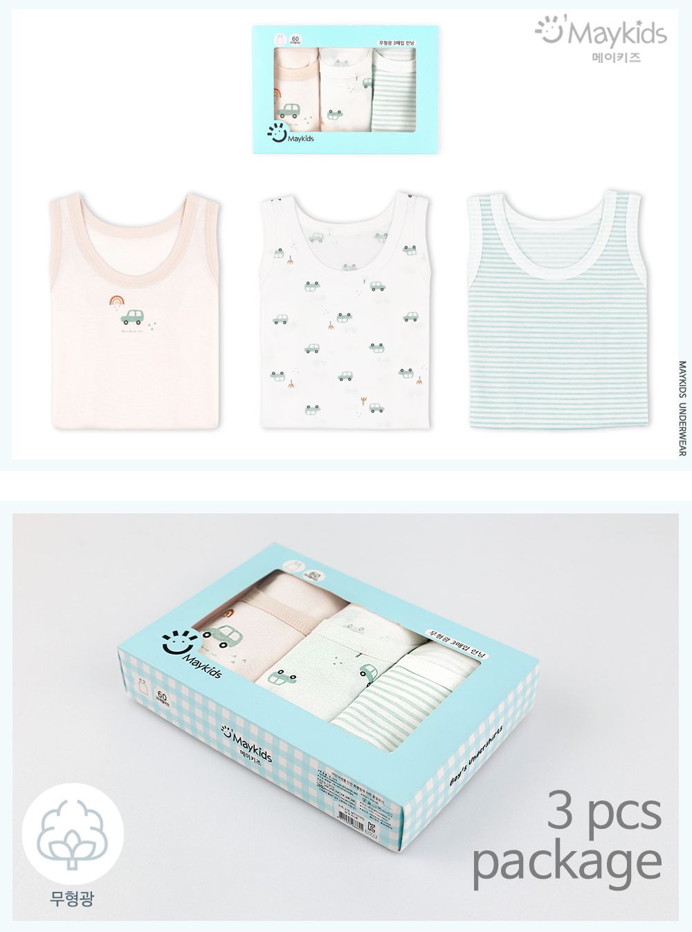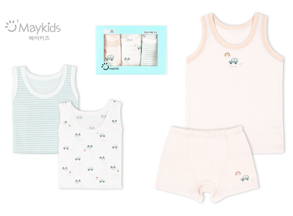 韓國 Maykids - (3入組)男寶無螢光輕柔棉背心