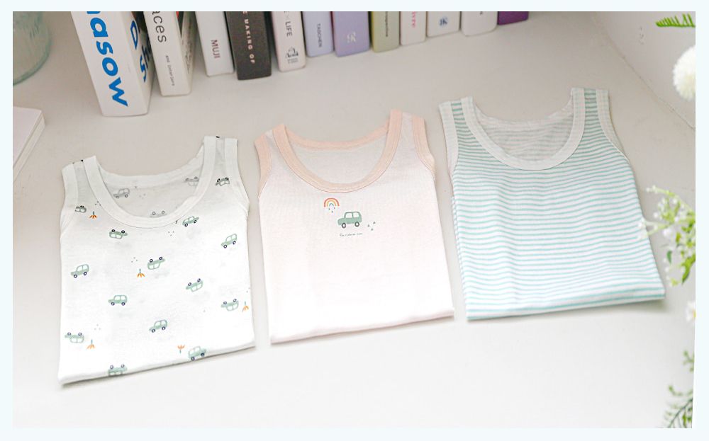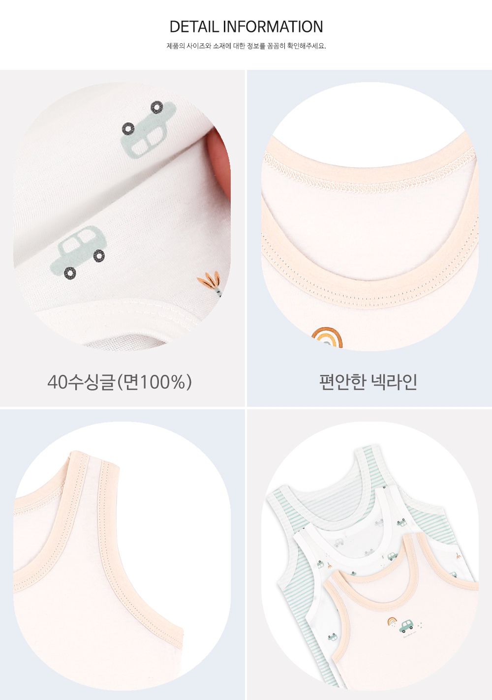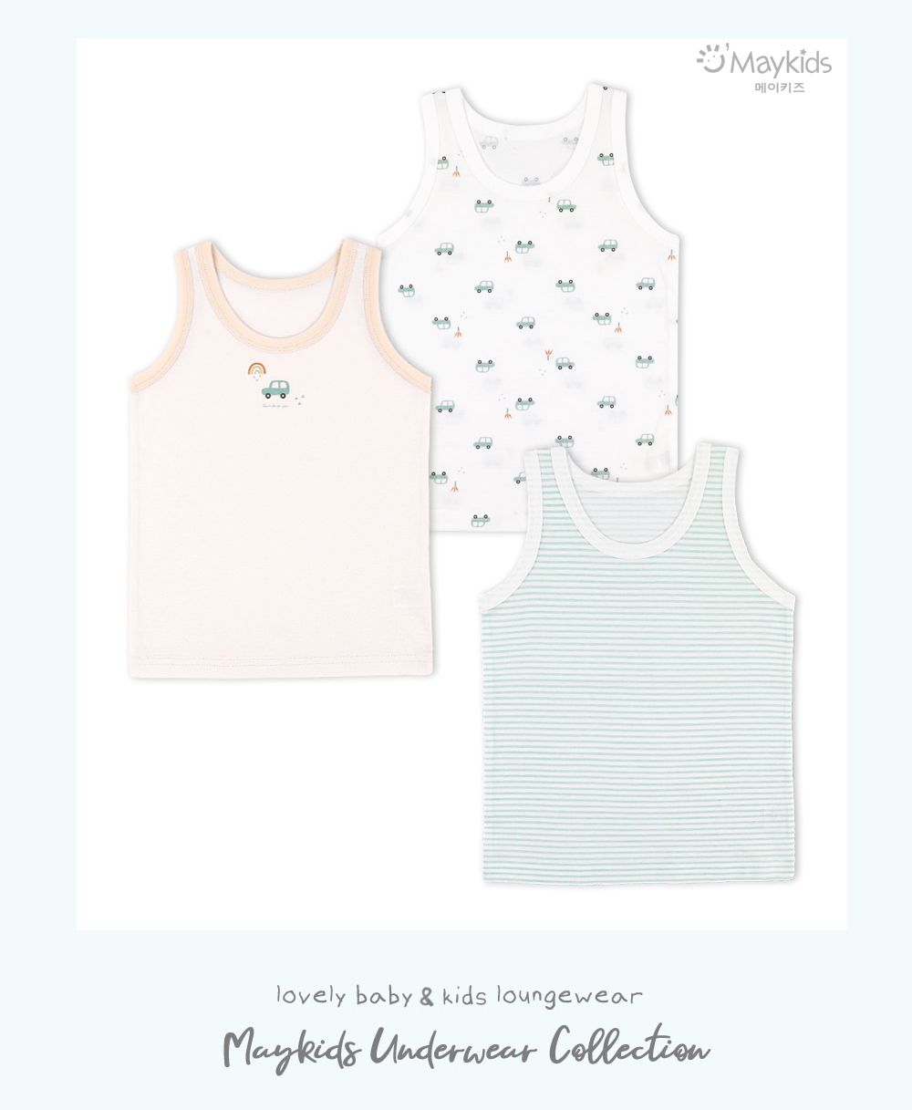 韓國 Maykids - (3入組)男寶無螢光輕柔棉背心-條紋X車車