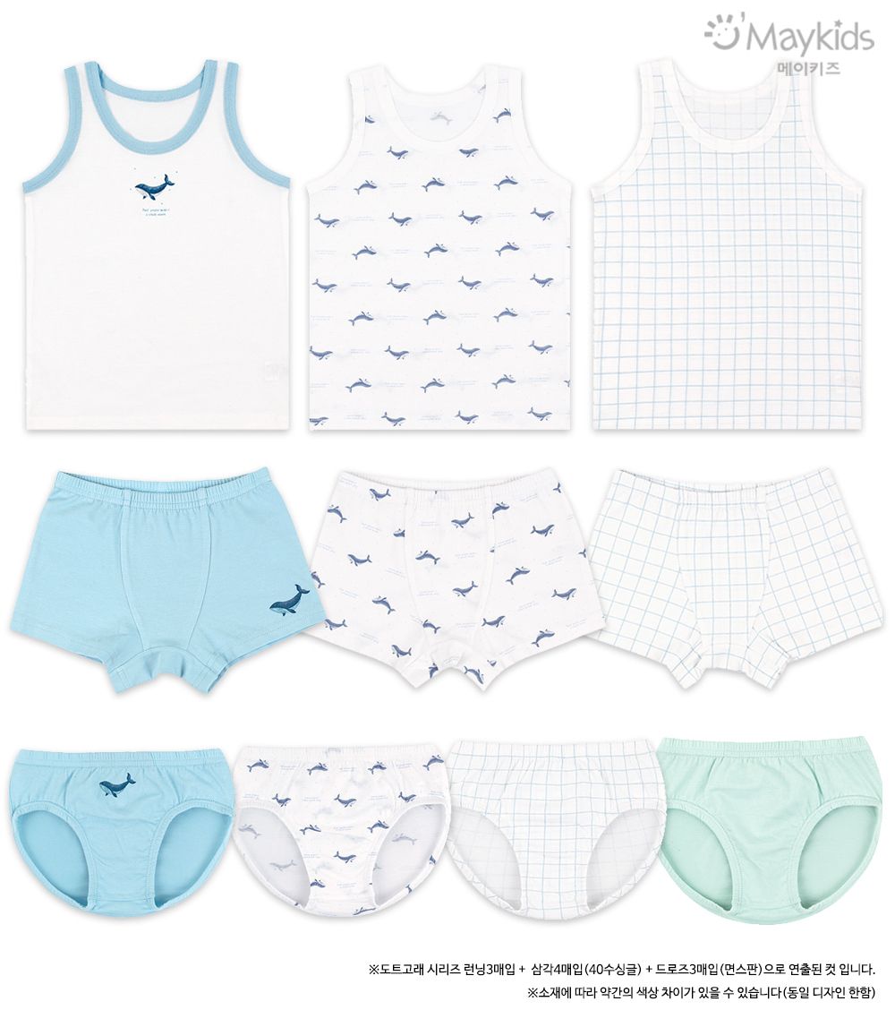 韓國 Maykids - (3入組)男寶無螢光輕柔棉彈性四角褲-格紋X鯨魚