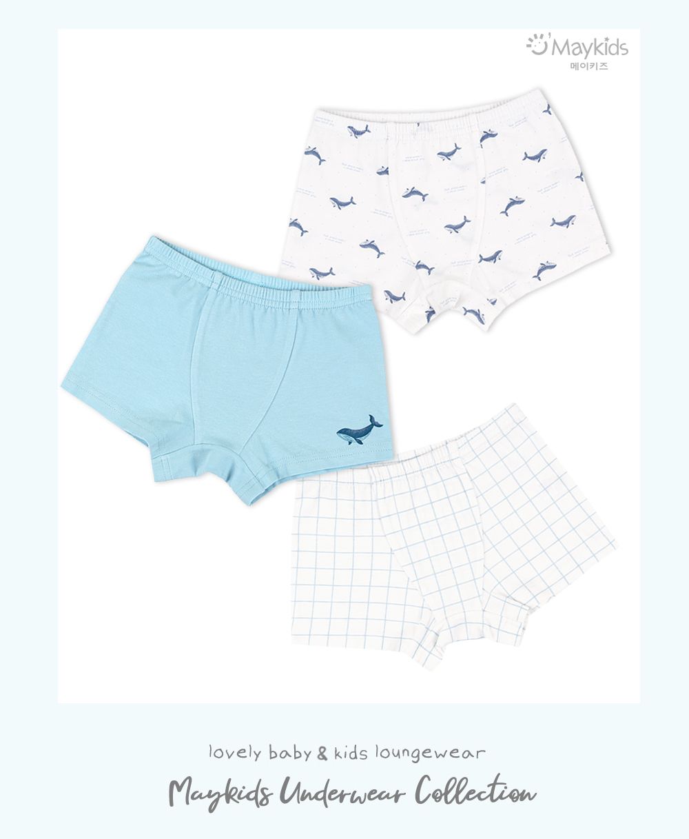 韓國 Maykids - (3入組)男寶無螢光輕柔棉彈性四角褲