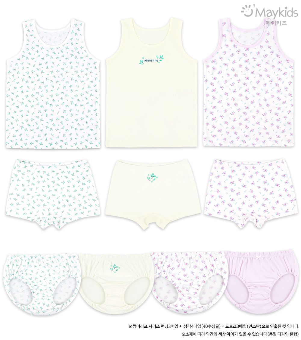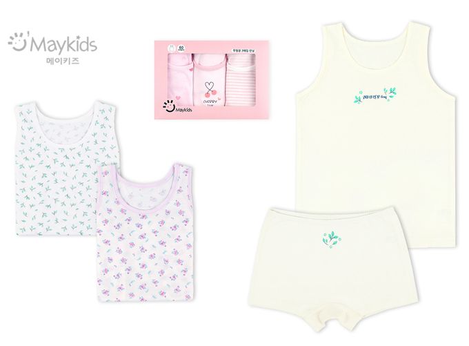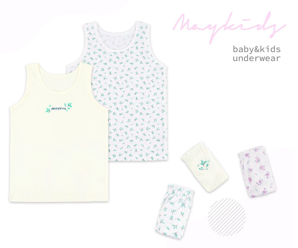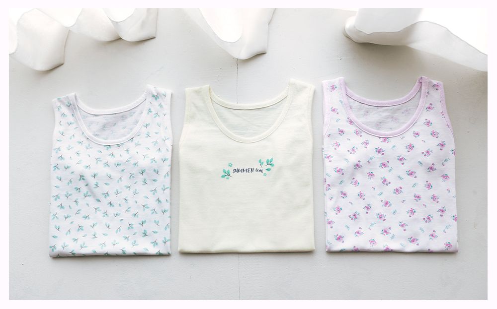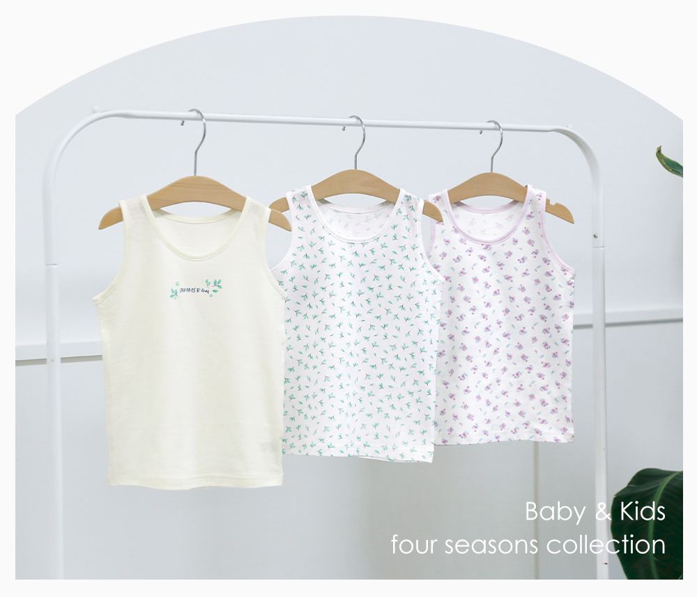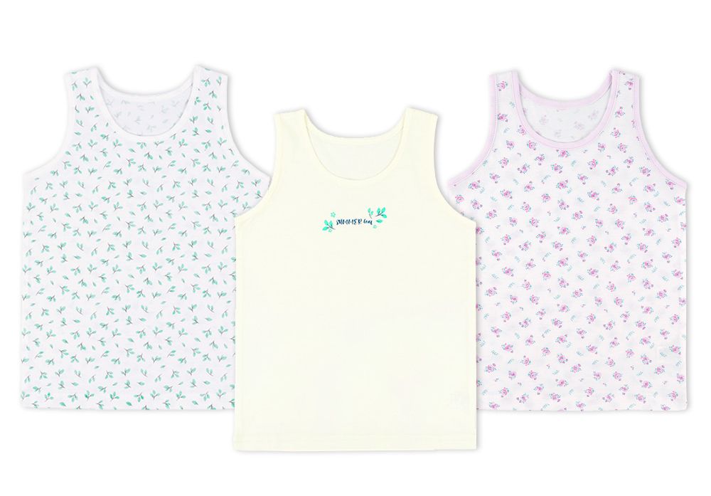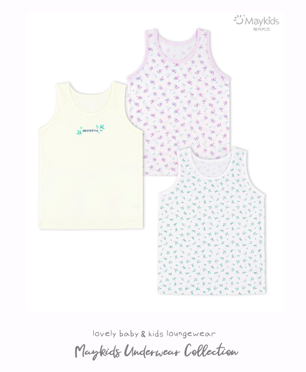 韓國 Maykids - (3入組)女寶無螢光輕柔棉背心-樹葉X花束