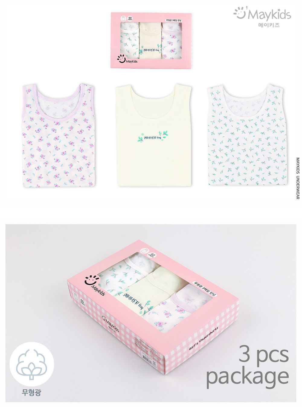 韓國 Maykids - (3入組)女寶無螢光輕柔棉背心